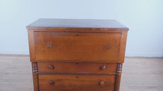 A striking American Empire dresser, showcasing the enduring strength and sculptural lines that define this early 19th-century style. Crafted from solid cherry or mahogany with warm, time-softened tones, this true period piece displays the hallmark turned column supports and generous drawer proportions typical of the Empire era.