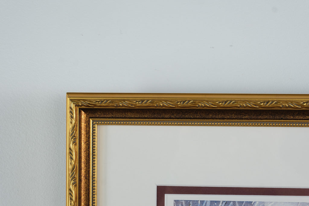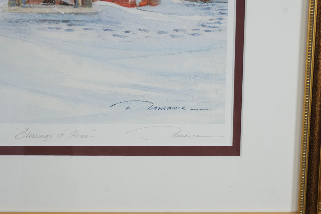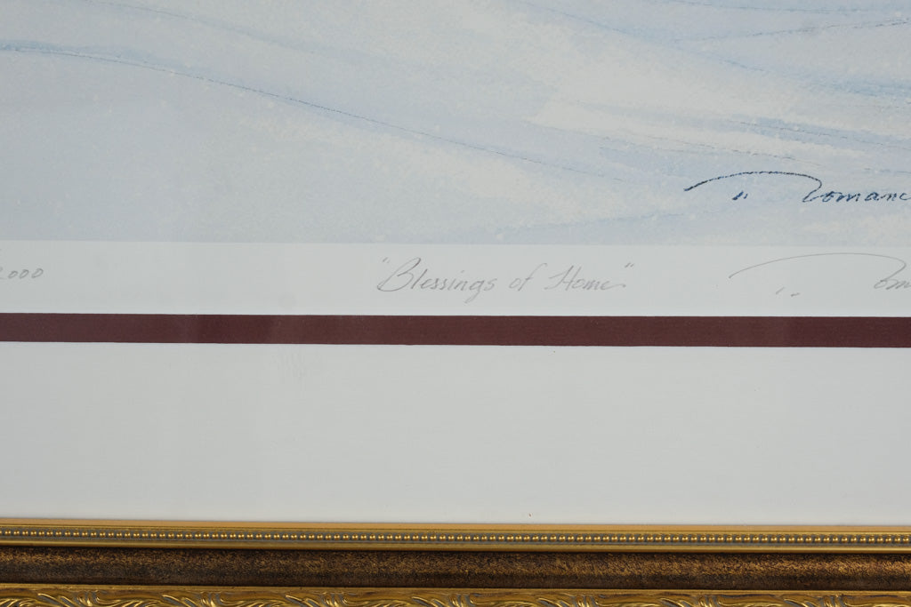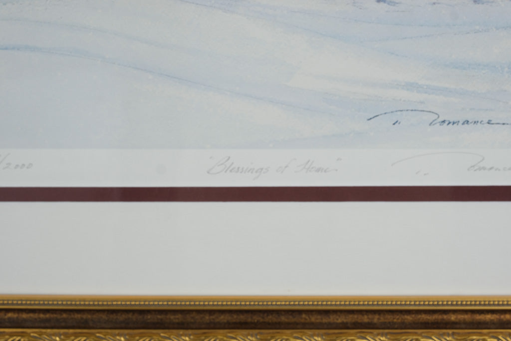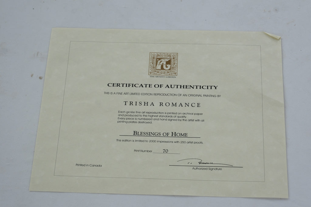 This fine art reproduction is hand-signed and numbered (70/2000) by the artist and includes its original Certificate of Authenticity from The Artist’s Garden. Elegantly framed in an ornate gold-tone frame with burgundy and ivory double matting, this piece embodies the heartwarming tranquility and craftsmanship that make Trisha Romance’s works so beloved among collectors.