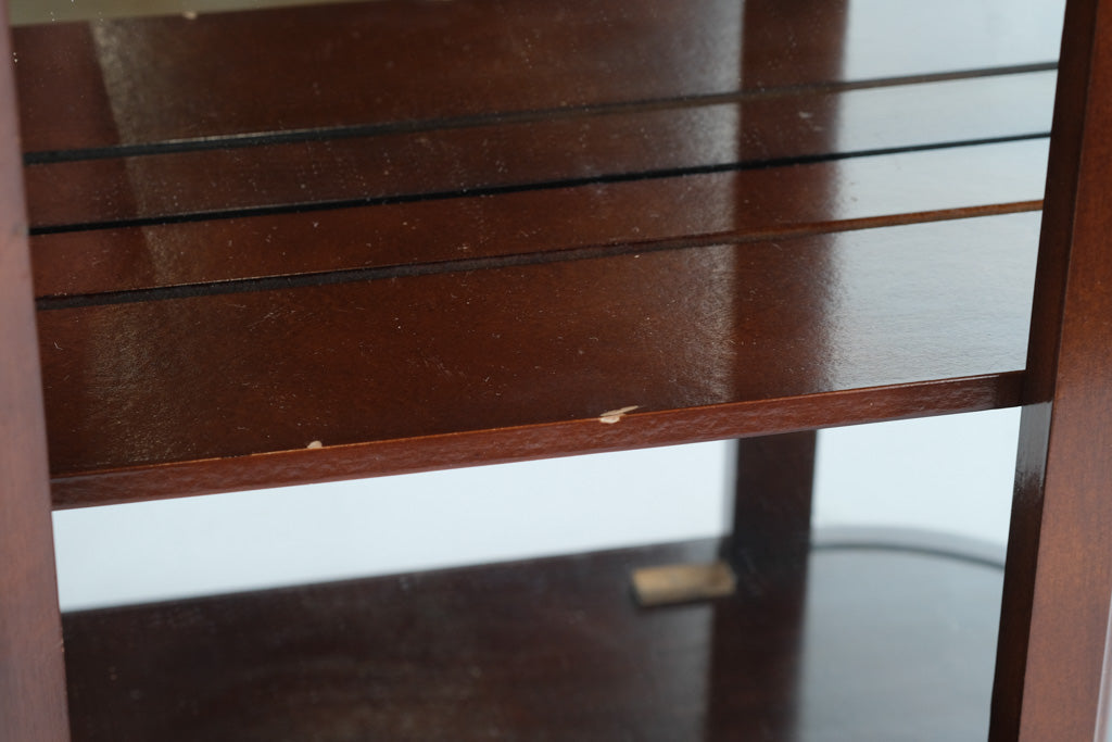 Good – Minor surface wear consistent with age and use, including small scuffs and light shelf marks. Glass panels intact with no cracks; cabinet remains sturdy and functional.