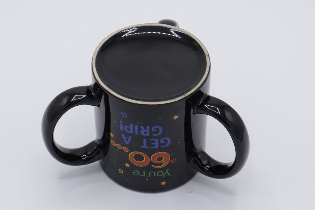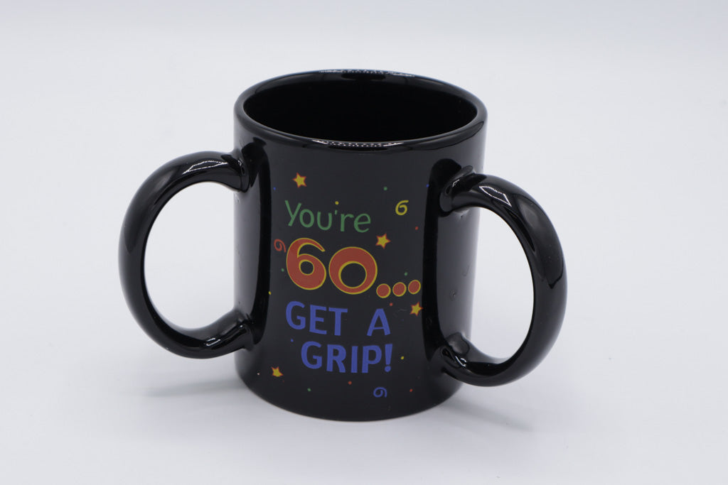 Make their 60th birthday unforgettable with this hilarious triple-handle novelty mug! Designed in sleek black ceramic, it features bold, colorful lettering that reads: “You’re 60… Get A Grip!”. With not one, not two, but THREE handles, it’s the ultimate gag gift for anyone who might need “a little extra help” at 60.