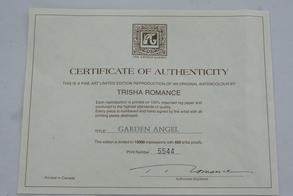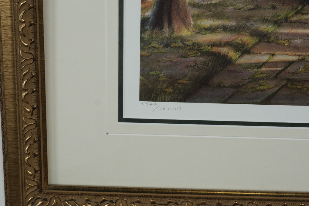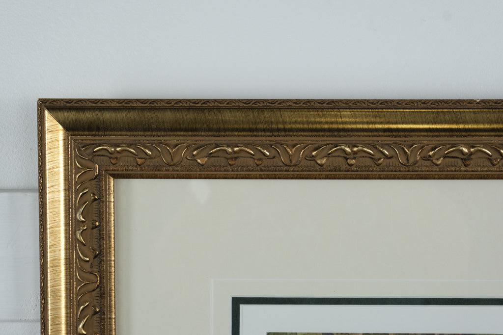 This fine art print is hand-signed and numbered (5544/15000) by the artist and comes with its original Certificate of Authenticity from The Artist’s Garden. Elegantly framed in an ornate gold-tone frame with double matting, this collectible artwork perfectly complements traditional, cottage, or nature-inspired interiors.