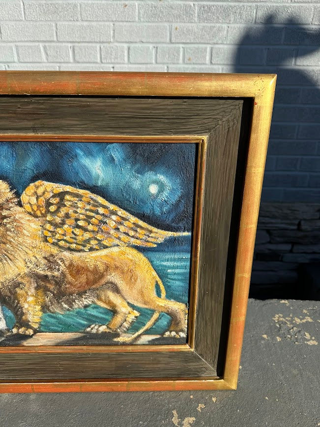 Guardian of the City Winged Lion Painting Oil and Sand on Board by Pietra Naldoni Thomeyc
