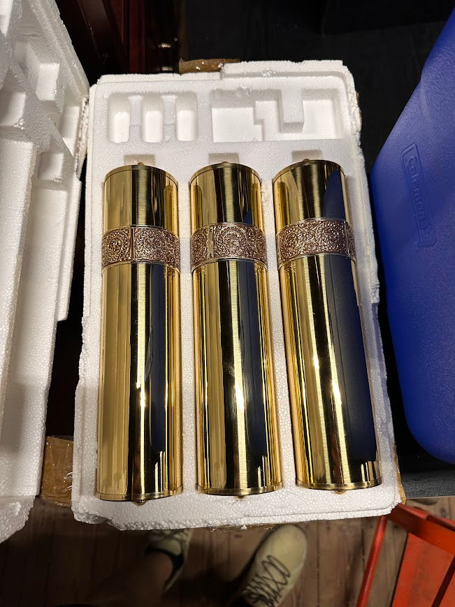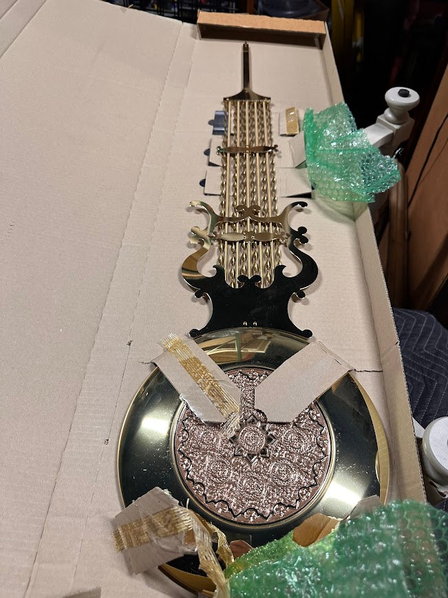 Brass weights and pendulum included, still packed in original protective material