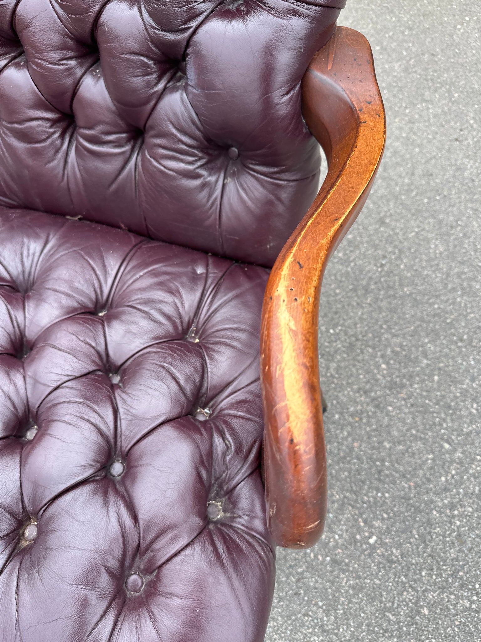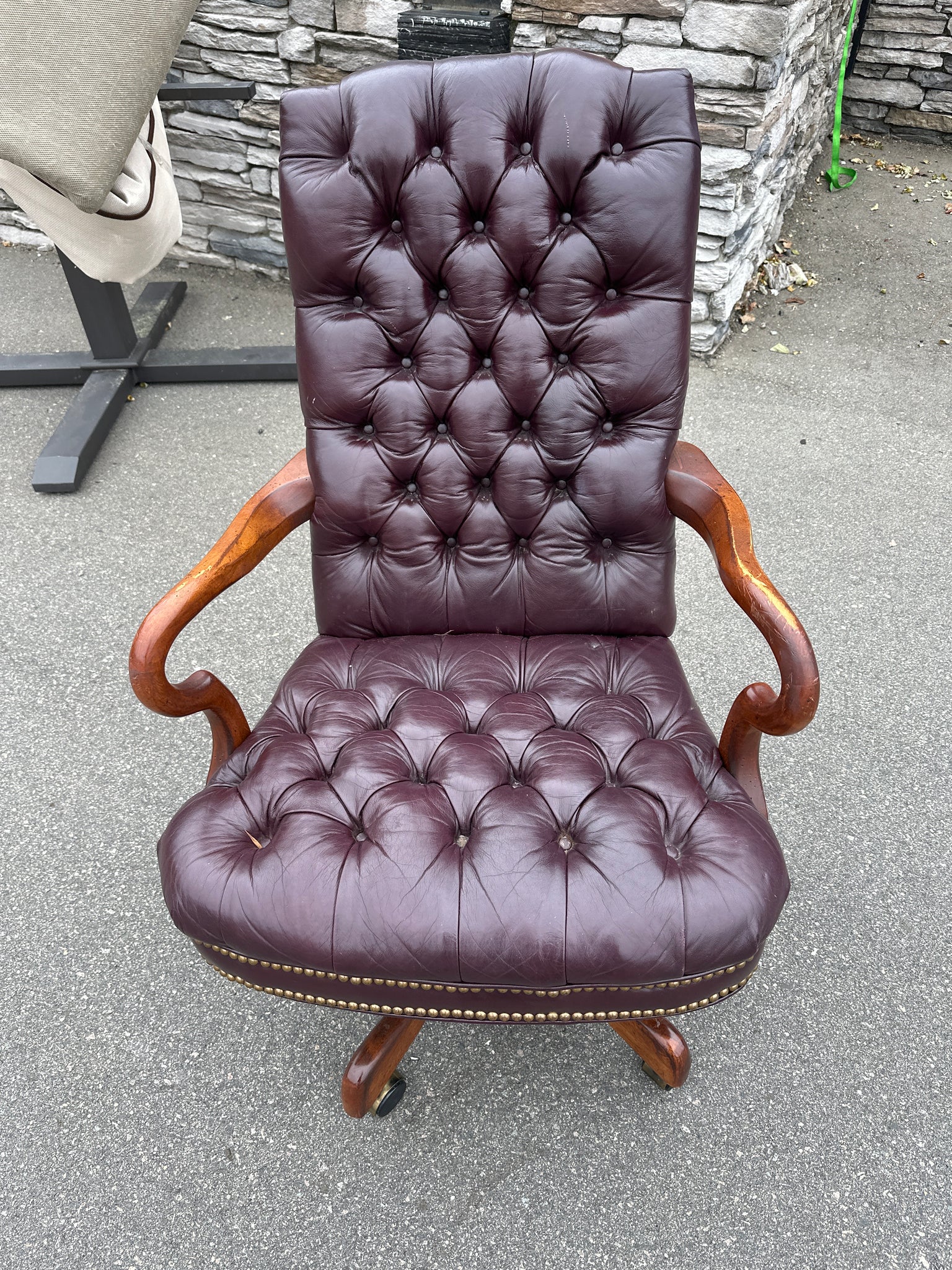 A distinguished statement piece for any office or study, this La-Z-Boy “Jamestown” desk chair embodies timeless craftsmanship and vintage executive appeal. Upholstered in rich burgundy leather with deep button tufting, its silhouette radiates heritage charm while offering exceptional comfort and support for extended sitting.