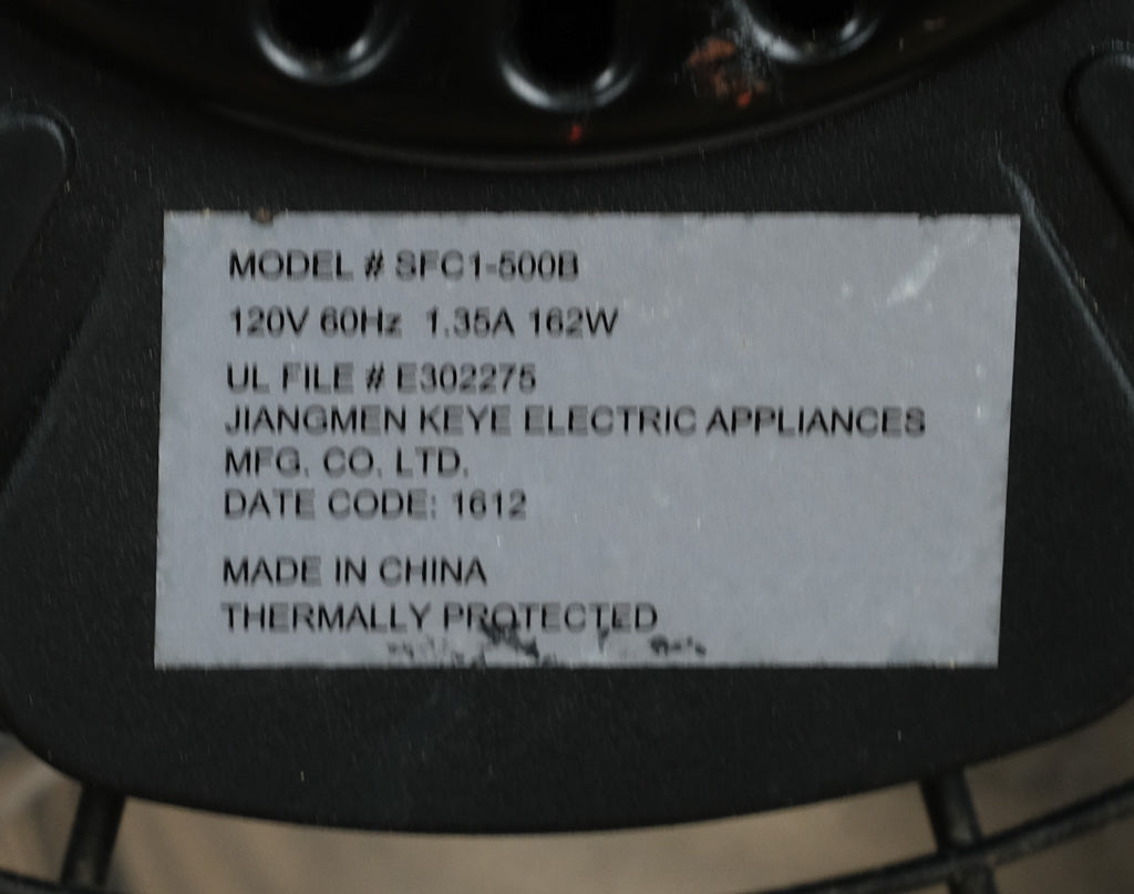 Bring powerful, reliable airflow to any space with this Jiangmen Keye Electric SFC1-500B High-Velocity Floor Fan. Built for performance and durability, this fan features a sturdy metal frame, adjustable tilt head, and robust three-blade aluminum propeller that delivers impressive air circulation for workshops, garages, offices, and home use alike. The sleek black design complements any setting, while the easy-carry handle and stable base make it both portable and practical.