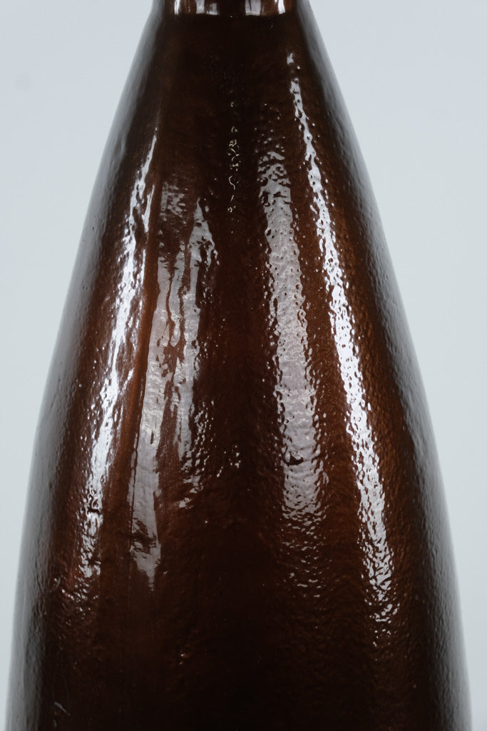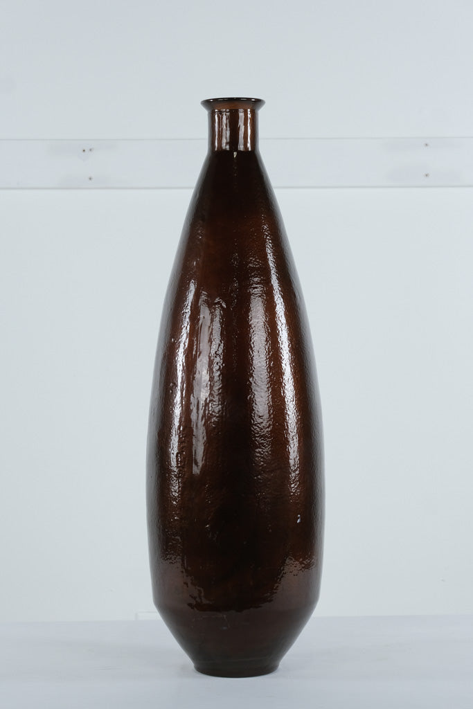 This striking brown glass vase stands at an impressive 32" tall with a 9.5" round base. Its glossy mocha finish and smooth, elongated silhouette make it an elegant statement piece for any room. Ideal for displaying tall floral arrangements or as a standalone decorative accent, this vase brings warmth and sophistication to your space.