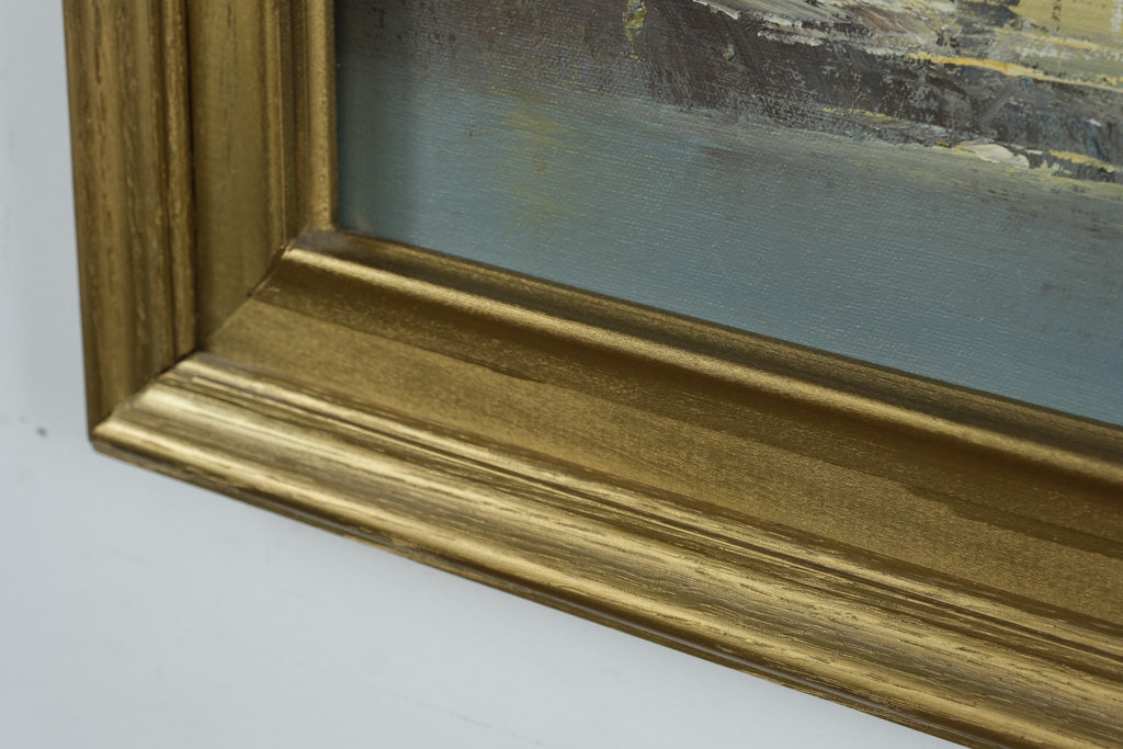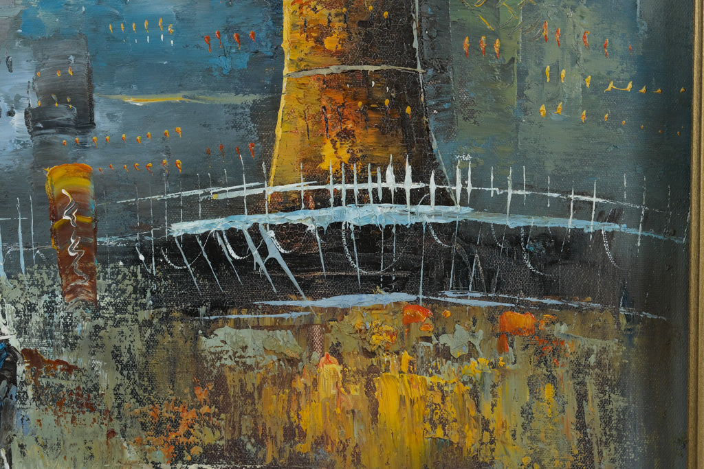 Capture the spirit of Paris with this dramatic and vibrant oil painting of the iconic Moulin Rouge. The expressive brushwork, luminous color palette, and heavy impasto textures bring the lively street scene and illuminated windmill to life. The artist's signature is visible in the lower right corner, though we have not identified the painter. Set in a classic gold wood frame, this piece is ready to hang and adds European flair to any space.