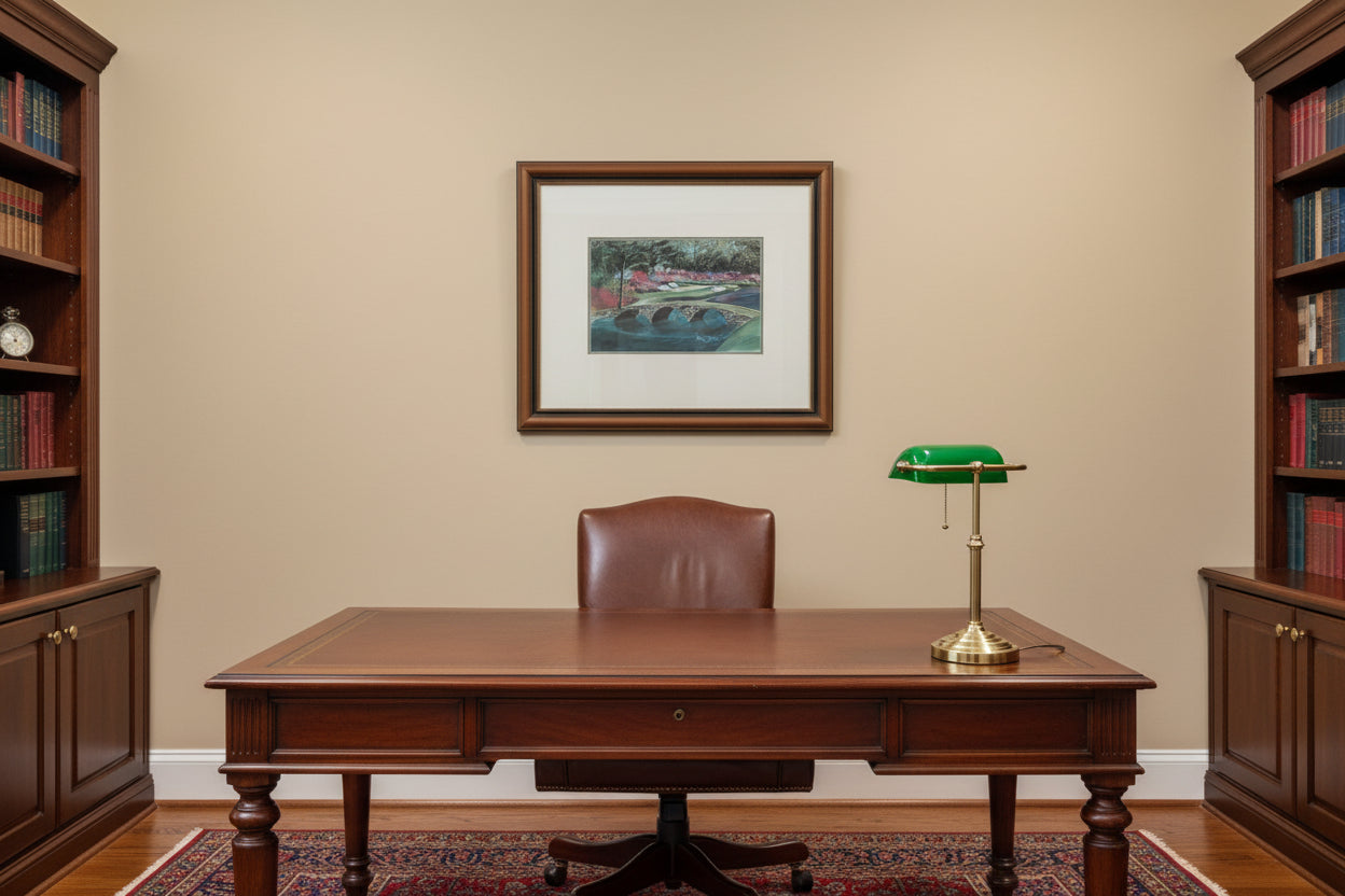 Bring a touch of golf history and artistry into your home or office with “Byron Nelson Bridge at #12” by Nancy Raborn. This signed and numbered print, created from Raborn’s original watercolor, beautifully depicts the iconic stone bridge and lush landscape of Augusta National’s 12th hole—one of golf’s most beloved and photographed scenes. The composition’s rich blues, greens, and azaleas in bloom perfectly capture the peaceful elegance of this legendary course. Professionally framed and matted, this piece includes a Certificate of Authenticity verifying it as part of a limited edition of 5,000 prints.