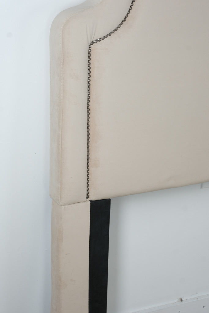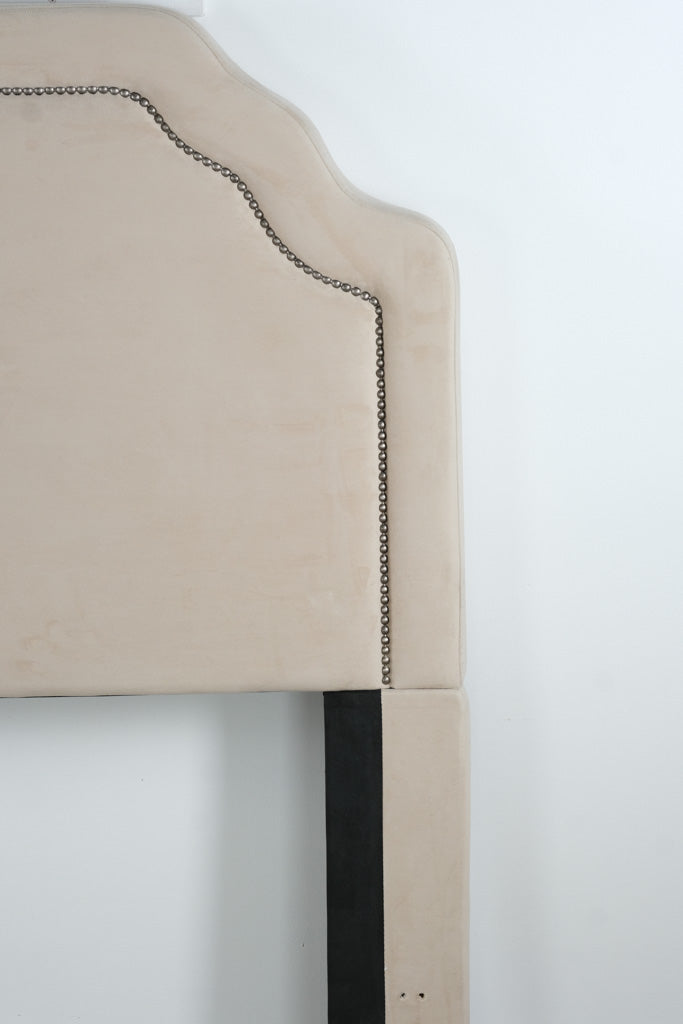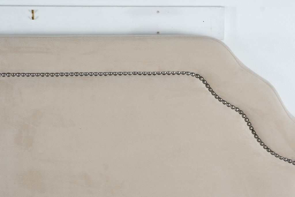 Bring a touch of refined sophistication to your bedroom with this beautifully upholstered queen-size headboard. The soft neutral fabric and elegant nailhead trim outline its graceful, curved silhouette—an inviting combination of classic charm and modern comfort that instantly elevates any space.