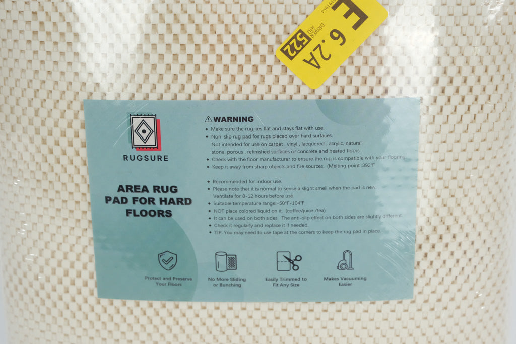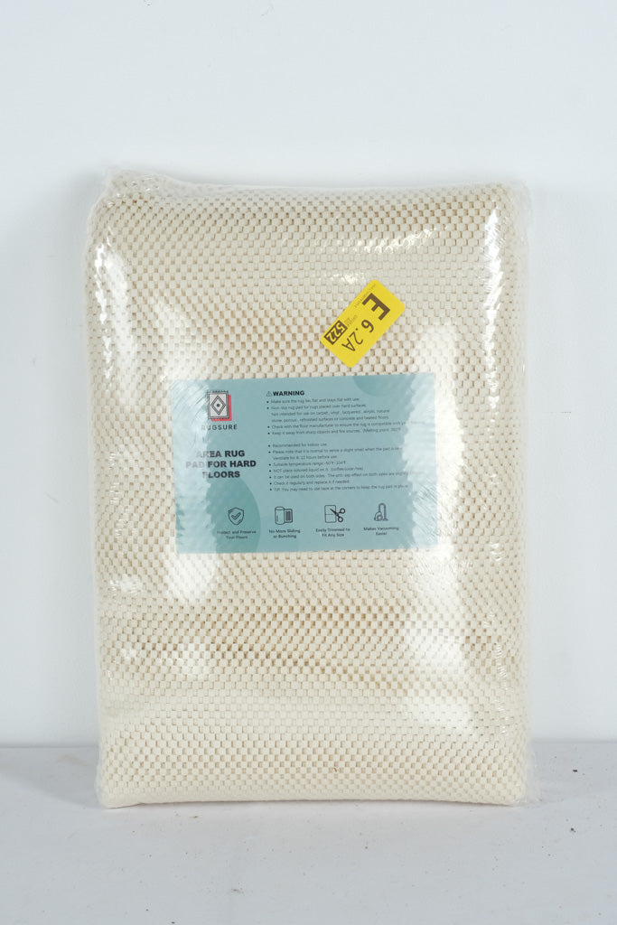 Keep your rugs safely in place and your floors protected with this Rugsure Non-Slip Area Rug Pad for Hard Floors. Designed for durability and convenience, this beige open-weave pad provides excellent grip while allowing airflow to prevent moisture buildup. Ideal for use on hardwood, tile, laminate, or vinyl floors, it adds a soft cushioning layer underfoot and makes vacuuming easier. The pad can be easily trimmed to fit any rug size for a custom, seamless fit in your home.
