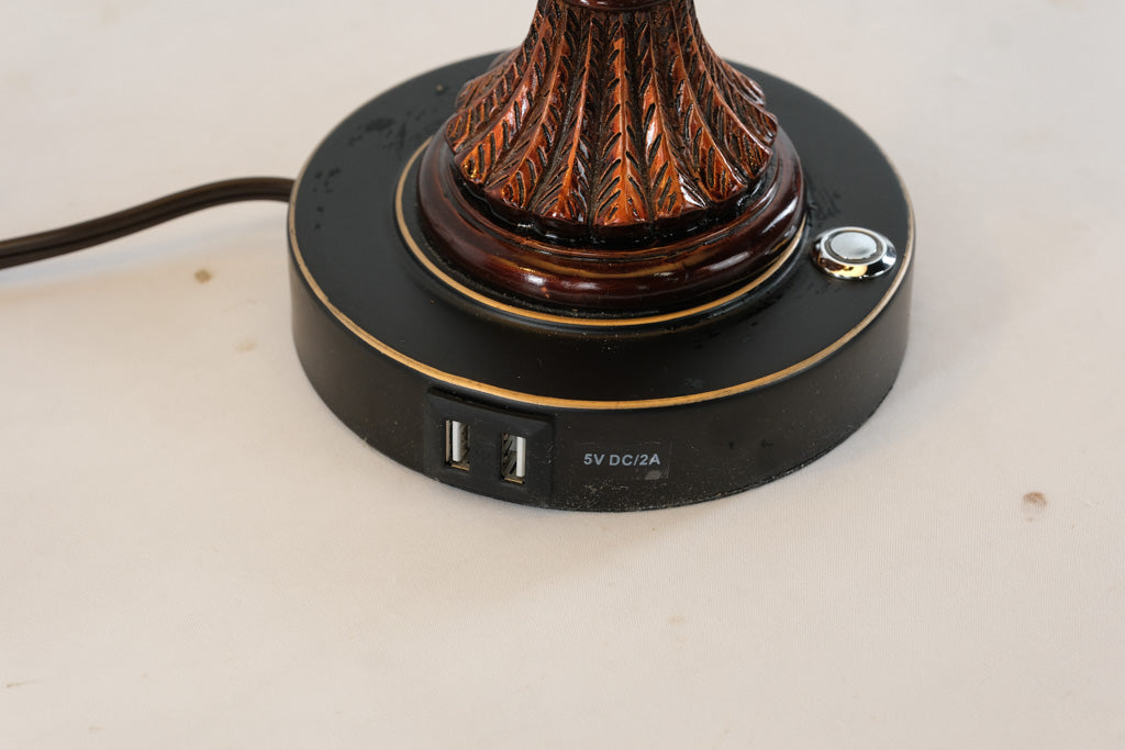 Beautifully crafted with a sculpted resin and metal base in a rich bronze-copper tone, these lamps showcase fine detailing and a subtly flared beige linen shade for an inviting, classic look. The sturdy circular base (6" diameter) includes two integrated USB charging ports (5V DC/2A), allowing easy device charging without clutter. A touch-sensitive control provides three brightness settings for customized lighting.