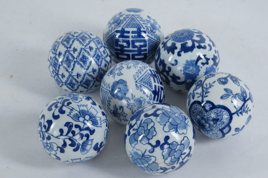 Set of seven 3" porcelain decorative balls