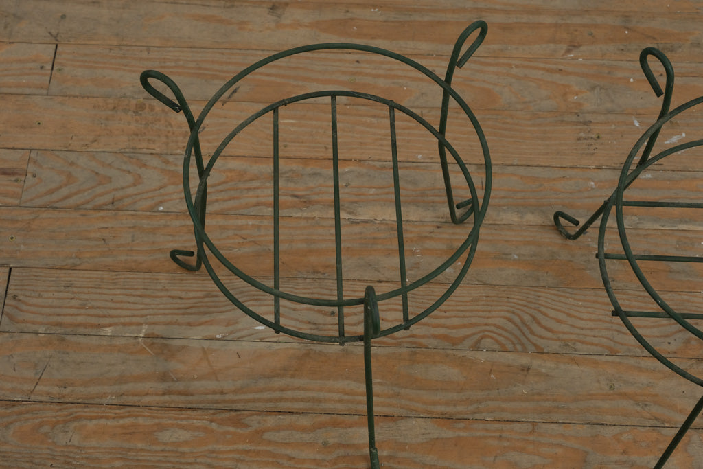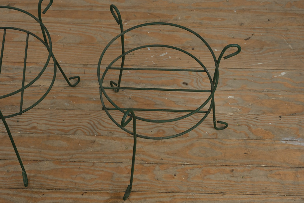 Bring structure and charm to your garden or indoor plant display with this set of green metal plant stands. Crafted from sturdy steel with a classic open design, these stands are both functional and decorative — perfect for elevating potted plants, ferns, or decorative urns. The soft green finish blends beautifully with natural foliage, while the scroll-style feet add a touch of vintage appeal. Built to support medium to large planters, these versatile stands can be used indoors or outdoors to showcase greenery at varying heights.