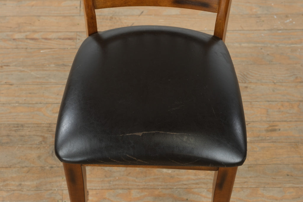 Understated and versatile, this solid wood dining chair combines clean lines with timeless appeal. Its warm wood finish and black vinyl upholstered seat make it a comfortable and adaptable choice for dining rooms, kitchen tables, or office spaces.