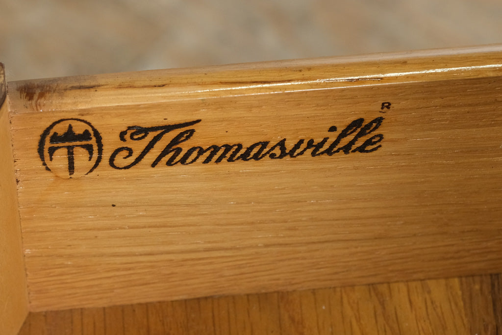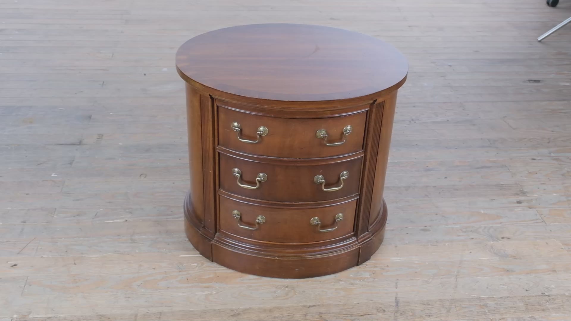 With its distinctive oval shape and traditional styling, this Thomasville side table makes a versatile addition to any room. Perfect as a bedside table, sofa companion, or standalone accent piece, it blends effortlessly into classic or vintage-inspired settings while offering generous storage and surface space.