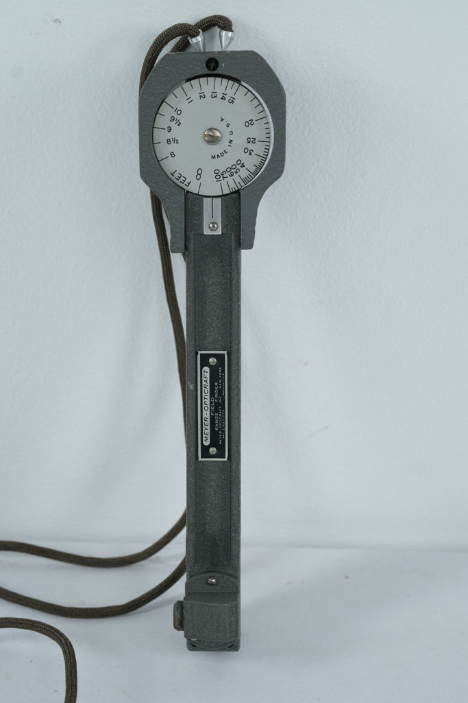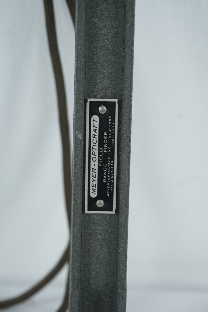 Step back into mid-20th century precision engineering with this Meyer Opticraft Range Finder, complete with its original leather case. Made in the U.S.A., this durable optical tool was designed to provide accurate distance measurements and remains a fascinating piece of vintage optical technology.