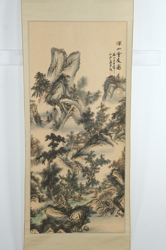 Very Good – Light natural toning from age; mild creasing and faint edge wear typical of vintage scrolls. Colors remain rich and detailed.
