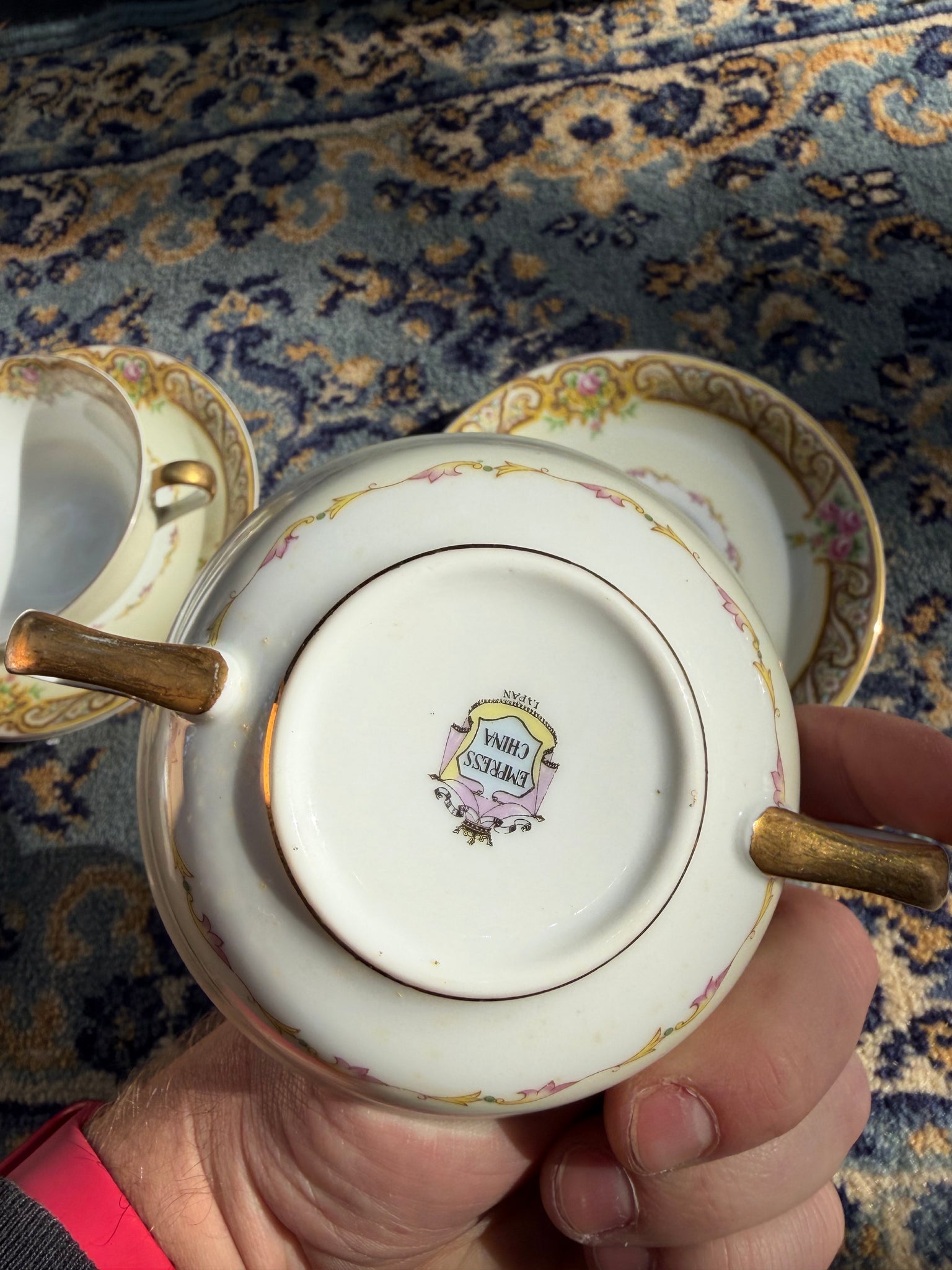 Vintage Empress China Japan Double-Handled Soup Cups with Saucers – Set of 2