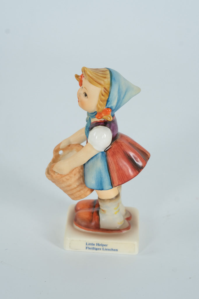 This vintage Goebel Hummel figurine is titled “Little Helper” (#73/0) and was crafted in West Germany during the TMK-5 era – 1972–1979, Last Bee mark.