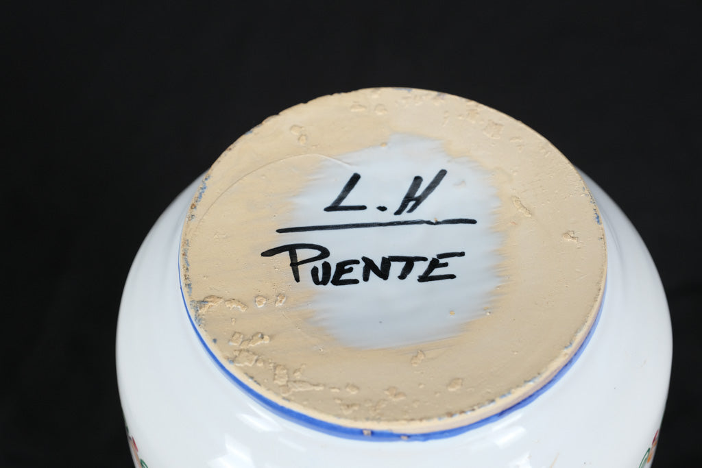 Talavera pottery, with origins in Spain dating back to the 16th century, is celebrated for its colorful glazes and intricate hand-painted patterns. The Puente family is among the respected artisans known for carrying on this tradition, blending historic techniques with unique personal touches. Collectors value L.H. Puente’s work for its vibrant detail, cultural heritage, and the authenticity it brings to Spanish decorative arts.