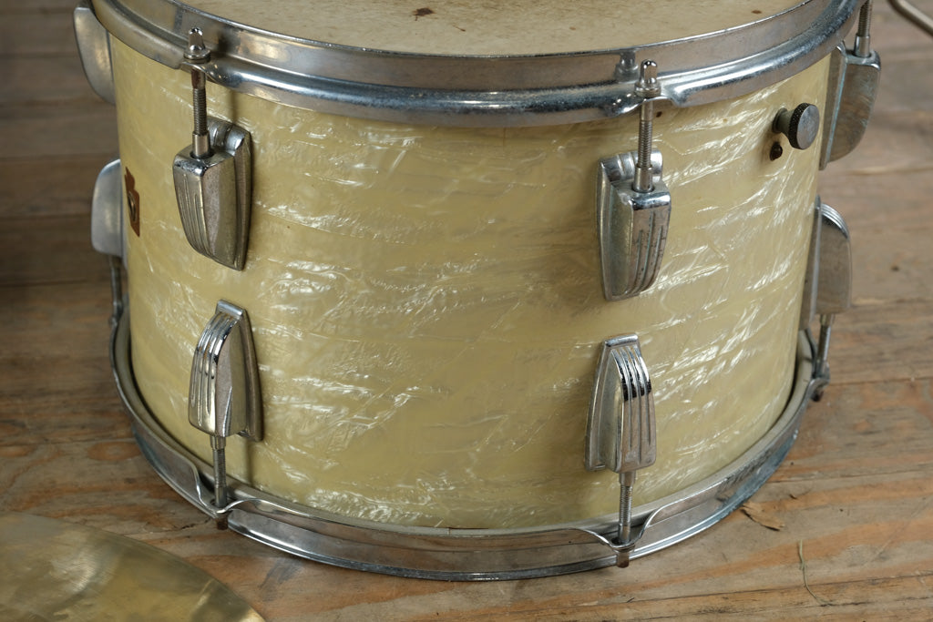 Authentic Ludwig 1950s 4-piece drum set in White Marine Pearl finish