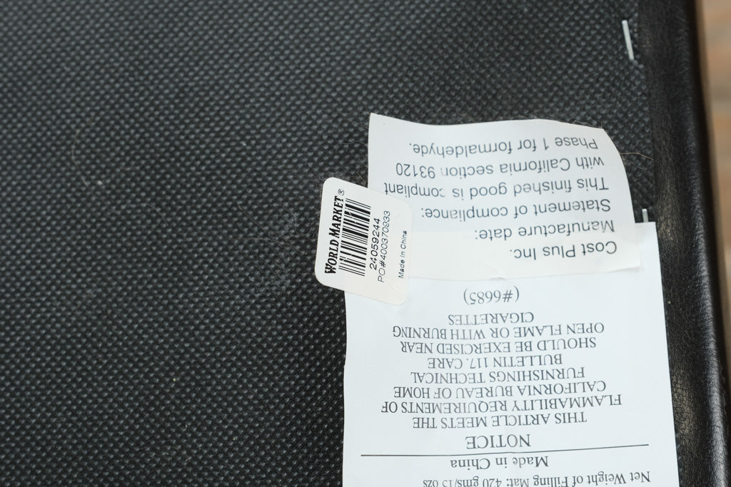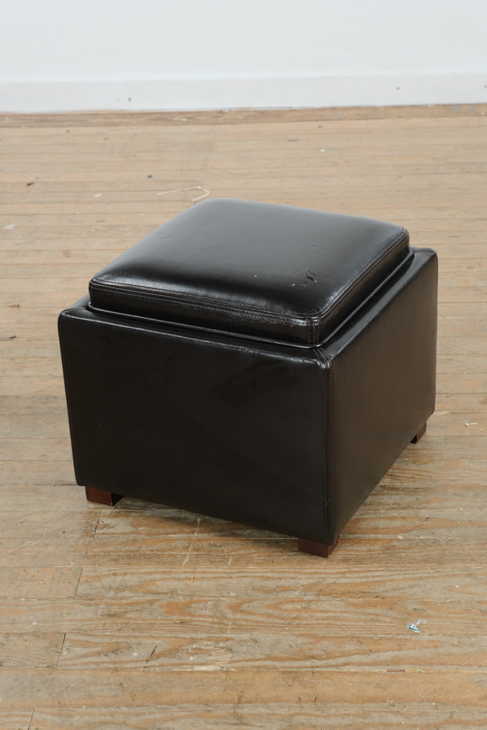 A versatile and timeless accent, this World Market storage ottoman blends functionality with sophisticated modern design. Wrapped in sleek black faux leather, it offers both seating and storage while featuring a clever reversible top—cushion on one side, and a handsome wood tray on the other for serving or display.